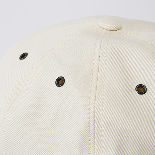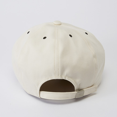 後ろ6枚のレンゲに艶消しハトメが入り、後部には共布アジャスターが付くので様々な頭のサイズに対応。