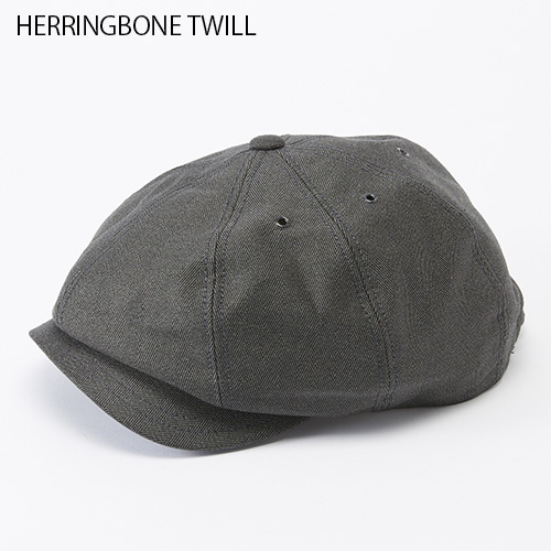黒と白は光沢感のある高密度のツイルを使用、ヘリンボーン生地は抜染プリント生地を使用したACORNキャスケット。