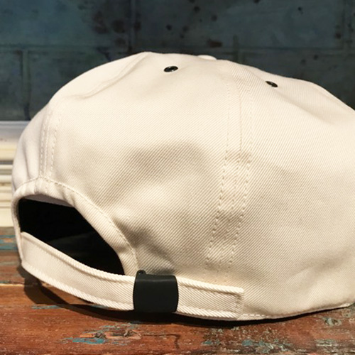 後部アジャスター部分を大きく作り、バギージーンズを穿くようにサイズをギュっと絞って被る仕様です。