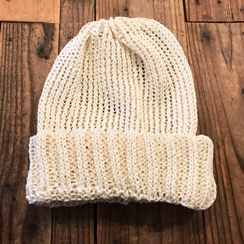 布帛とは違いニット生地なので軽く柔らかいので優しい被り心地が特徴。